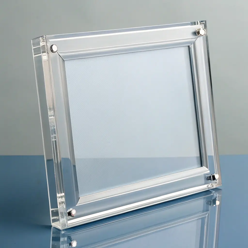 This acrylic achievement plaque features a clear, high-gloss surface with a modern rectangular shape. Its transparent design allows for vibrant engraved or printed messages, making it ideal for awards and recognitions. The acrylic material provides a lightweight yet durable option, suitable for various occasions. Its sleek look complements contemporary award presentations.